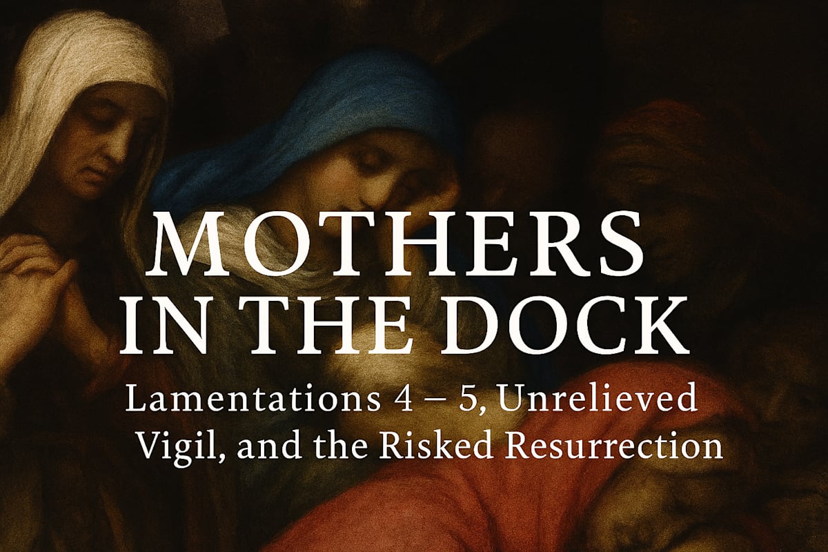 In the biblical Book of Lamentations, the community of Jerusalem grieves its utter destruction. But instead of moving toward healing, the text ends with an unresolved, agonizing plea. This is a deliberate theological strategy known as an “inverted rîb,” or covenant lawsuit. The cosmos itself becomes a suspended courtroom where the suffering community puts God in the dock for failing to act. This posture of “unrelieved vigil” refuses to let the divine off the hook.