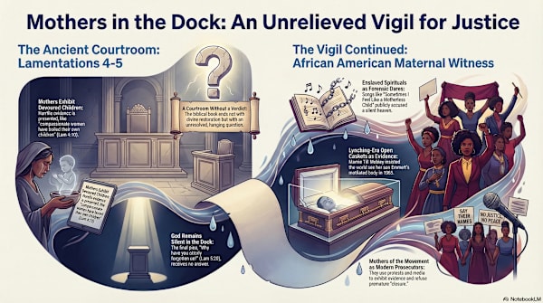 This ancient idea finds a powerful modern echo in the “Mothers of the Movement,” Black mothers whose children were killed by police or vigilante violence. Like the figures in Lamentations, they perform a lived exegesis of the text. Mamie Till-Mobley’s decision to hold an open-casket funeral for her mutilated son, Emmett Till, was a direct parallel to Lamentations exhibiting its “devoured children.” These women transform private grief into a public indictment of systemic injustice and divine silence, refusing premature narratives of forgiveness. Gwen Carr, mother of Eric Garner, powerfully articulates this stance: