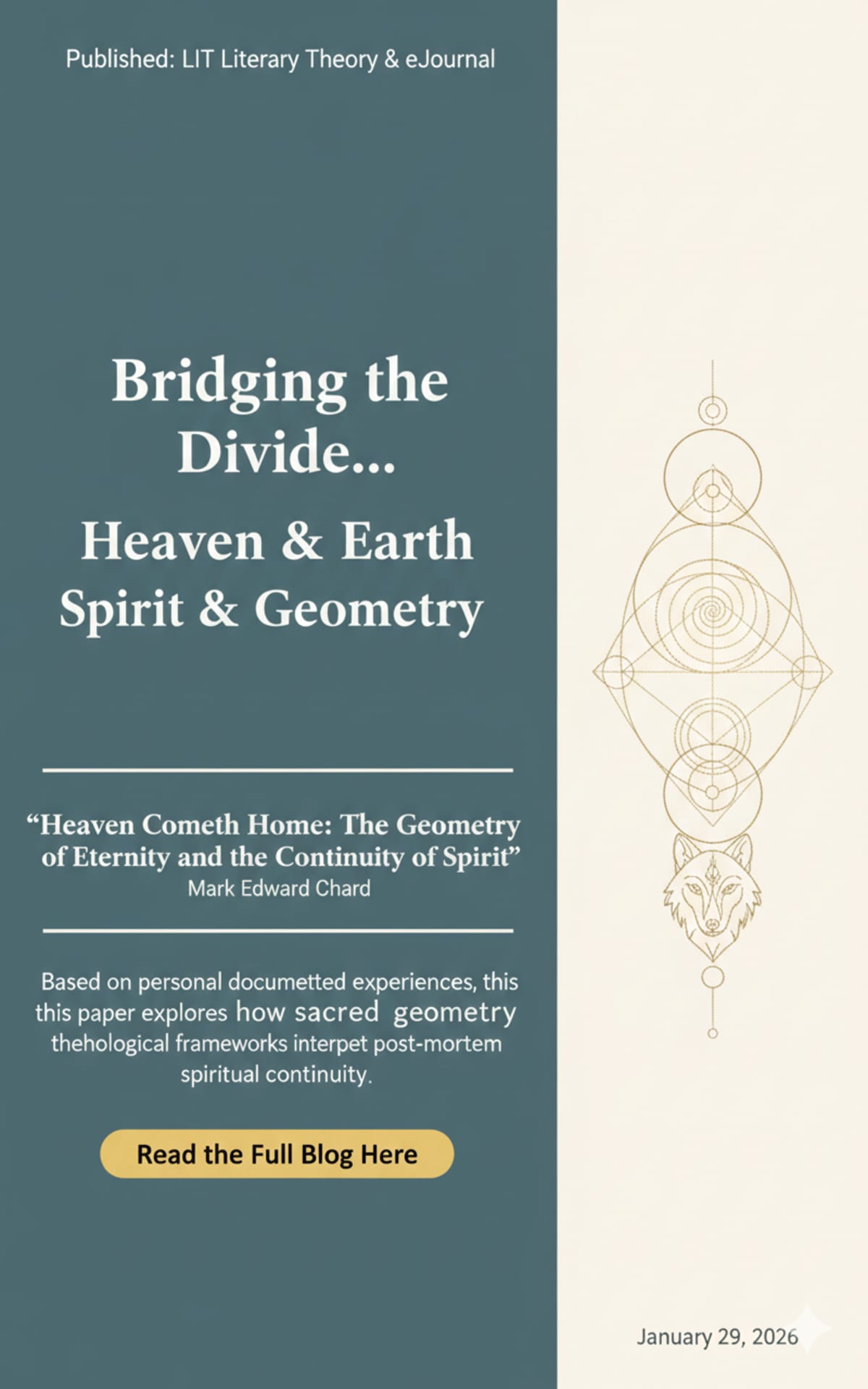 I am thrilled to share that my latest research, "Heaven Cometh Home: The Geometry of Eternity and the Continuity of Spirit," has officially been published in the Literary Theory & Criticism eJournal (Vol. 16, No. 5).