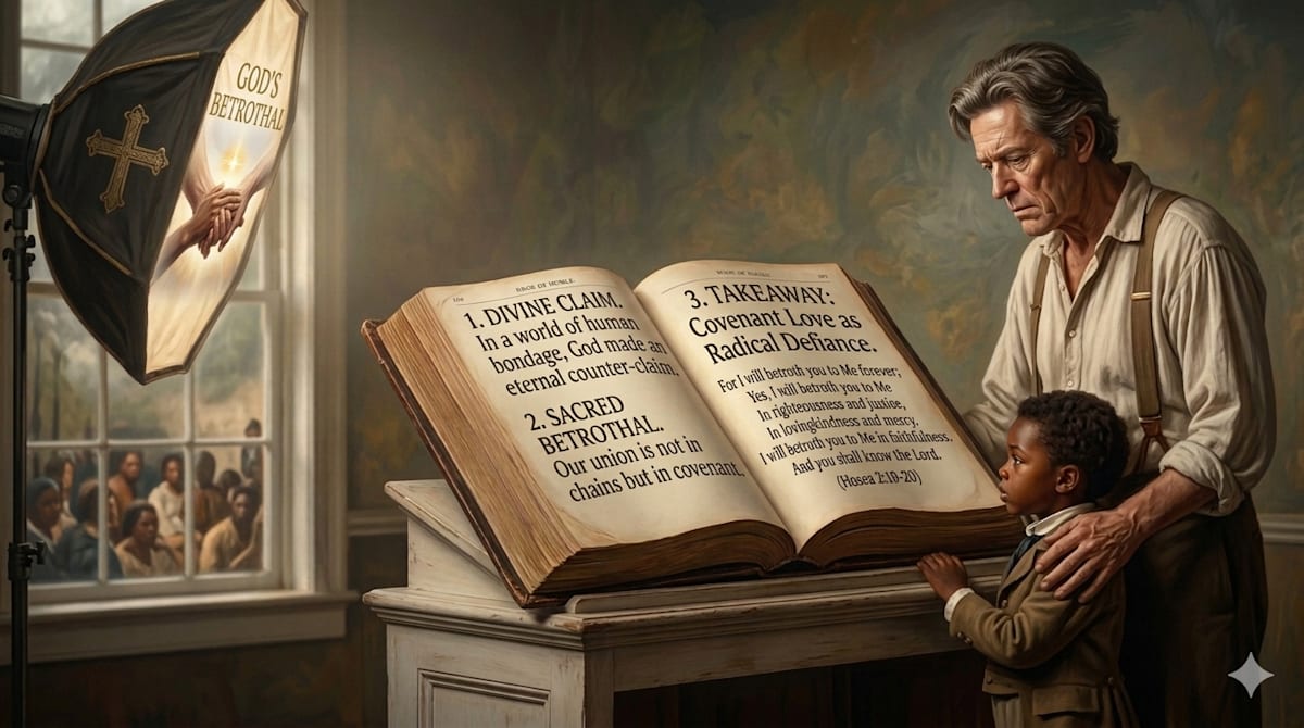 Under the machinery of chattel slavery, Black marriage was a legal impossibility, and families were treated as disposable property. Against this, the language of Hosea 2:19–20—a divine promise of an unbreakable "betrothal"—became a theological manifesto.